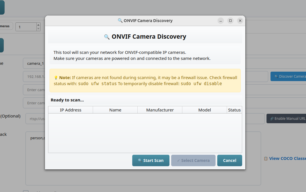 - You can also click Discover Camera, which uses ONVIF to scan for IP cameras on your network and makes it easier to connect without manual lookup.